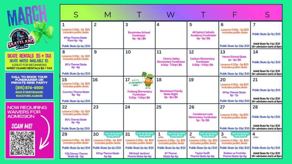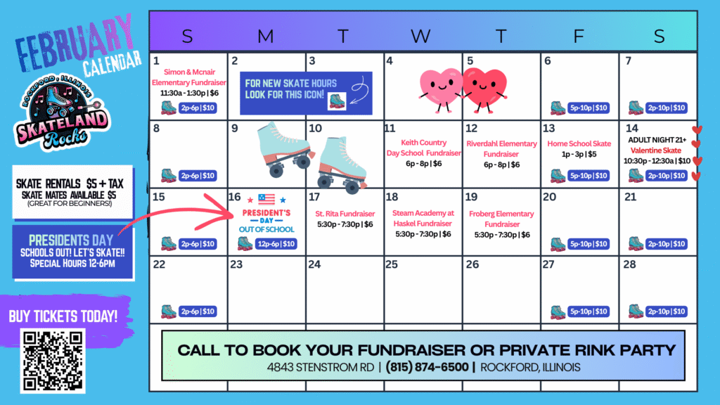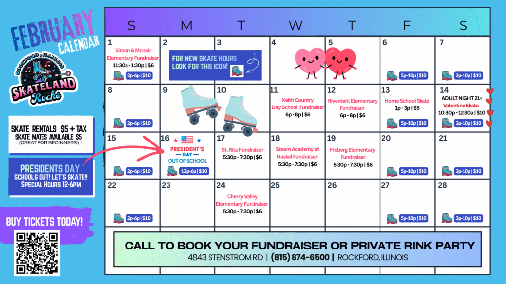 Open Skate Sessions at Skateland Rocks in Rockford, deliver the perfect blend of music, energy, and family-friendly fun for skaters of all ages. Enjoy a smooth skating floor, upbeat playlists, and a welcoming atmosphere designed for both beginners and seasoned skaters. Whether you’re planning a casual outing or a night of active fun with friends and family, Open Skate at Skateland Rocks offers a lively, safe environment where great memories are made—on wheels.