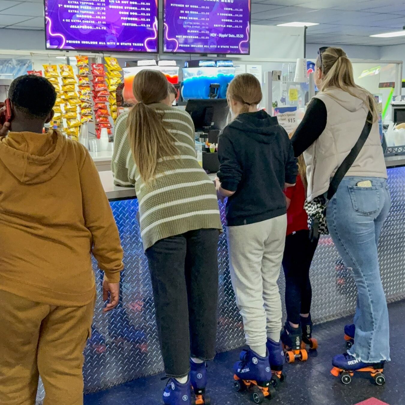 Skateland’s concession stand keeps everyone fueled with crowd favorites like fresh pizzas, classic hotdogs, warm pretzels, nachos, and a variety of tasty snacks. Whether you’re taking a break from skating or watching the action, there’s something delicious for every craving. It’s the perfect addition to birthday parties and group events, making every visit as satisfying as it is fun.