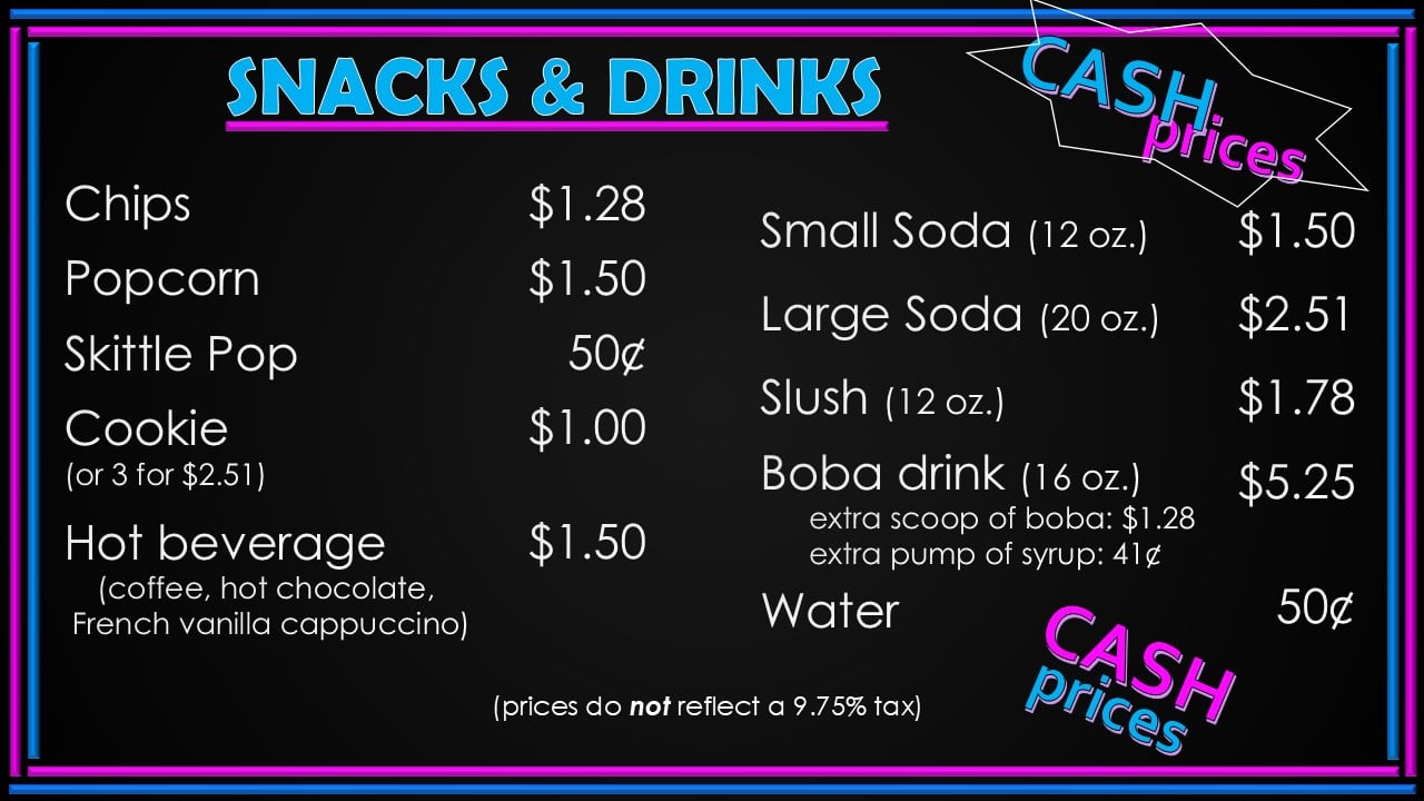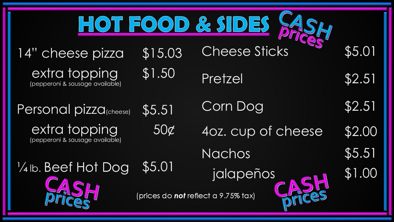ROCKFORD'S FAVORITE CONCESSIONS YOU'LL WORK UP AN APPETITE. WE'VE GOT YOU. NOTE: 4% DISCOUNT IF YOU PAY WITH CASH. PRICES DO NOT REFLECT 9.75 TAX. CASH PRICES NON-CASH PRICES