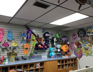 1 foil balloon, 3 printed latex w/Hi-Float, foil weight): $12